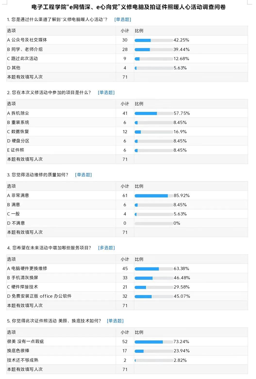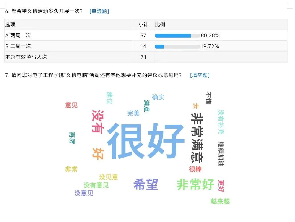 為更好地服務(wù)同學(xué),我們開(kāi)展問(wèn)卷調(diào)查,形成線上二維碼,參與活動(dòng)現(xiàn)場(chǎng)的同學(xué)們掃描反饋,隨后形成問(wèn)卷分析,以數(shù)據(jù)說(shuō)明問(wèn)題、以實(shí)際情況分析問(wèn)題、以同學(xué)需求解決問(wèn)題。