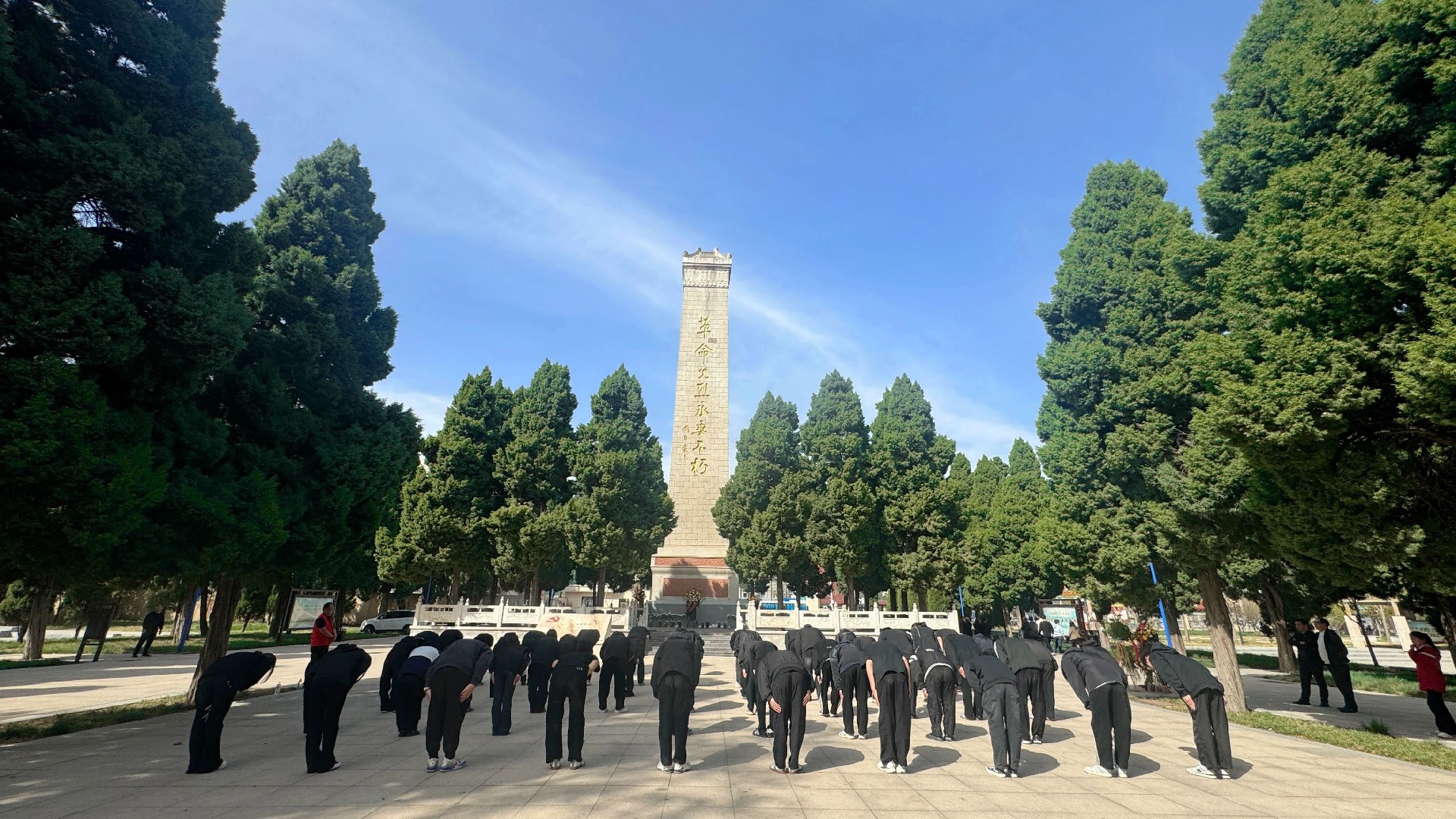 同學(xué)們懷著崇敬的心情,整齊列隊(duì)于烈士紀(jì)念碑前。蒼松翠柏間,革命烈士紀(jì)念碑巍然矗立,莊嚴(yán)肅穆。