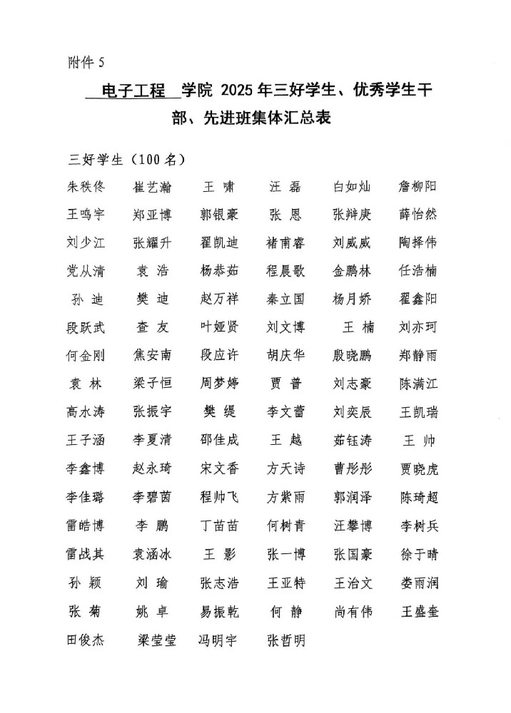 電子工程學(xué)院 | 2025年三好學(xué)生、優(yōu)秀學(xué)生干部、先進班集體和校獎學(xué)金學(xué)生名單公示