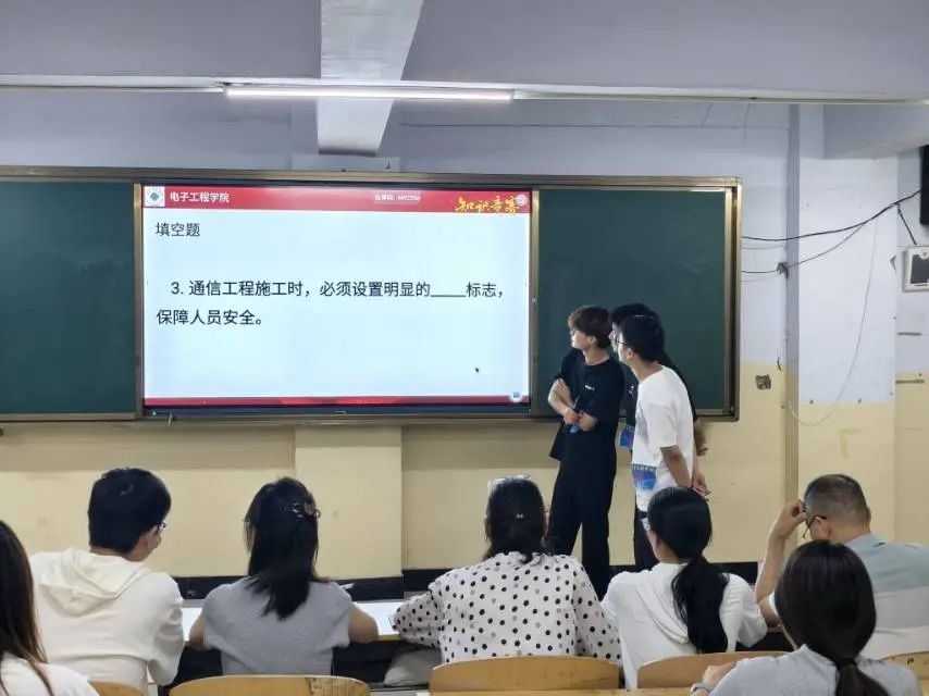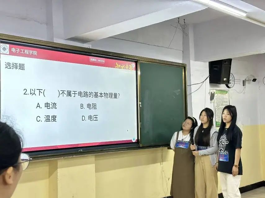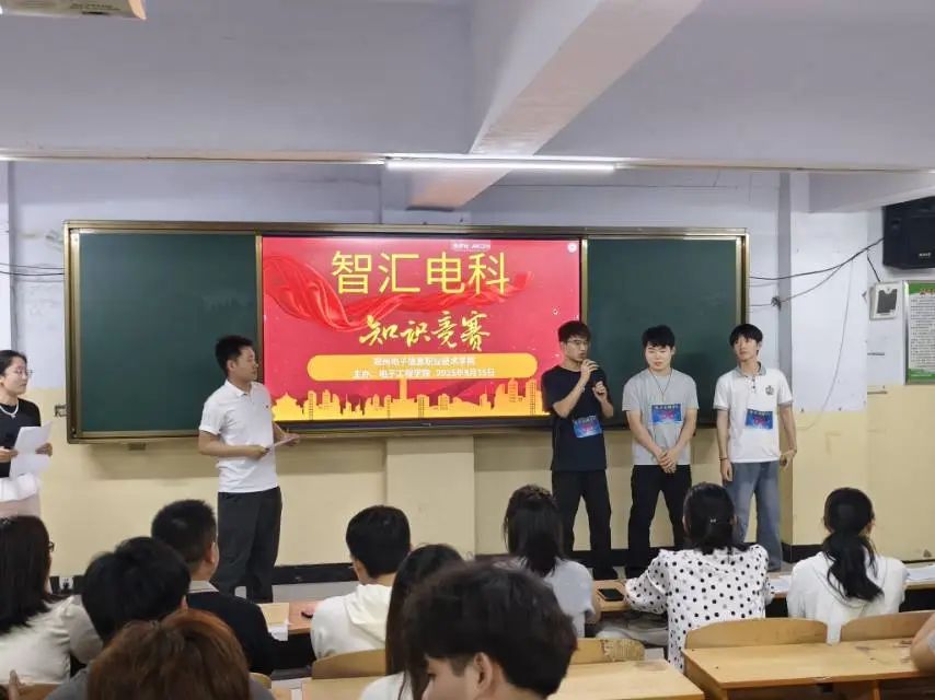 為全面展示職業(yè)教育特色與育人成果,切實(shí)提升學(xué)生職業(yè)技能水平與實(shí)踐創(chuàng)新能力,營(yíng)造崇尚技能、尊重勞動(dòng)的良好學(xué)習(xí)氛圍,2025年5月15日下午,在6號(hào)樓202教室電子工程學(xué)院成功舉辦了一場(chǎng)別開生面的知識(shí)競(jìng)賽,此次競(jìng)賽旨在激發(fā)同學(xué)們對(duì)專業(yè)知識(shí)的探索熱情,提升其綜合素養(yǎng),為廣大學(xué)生提供一個(gè)展示自我的平臺(tái)?;顒?dòng)吸引了眾多同學(xué)的積極參與,現(xiàn)場(chǎng)氣氛熱烈非凡。