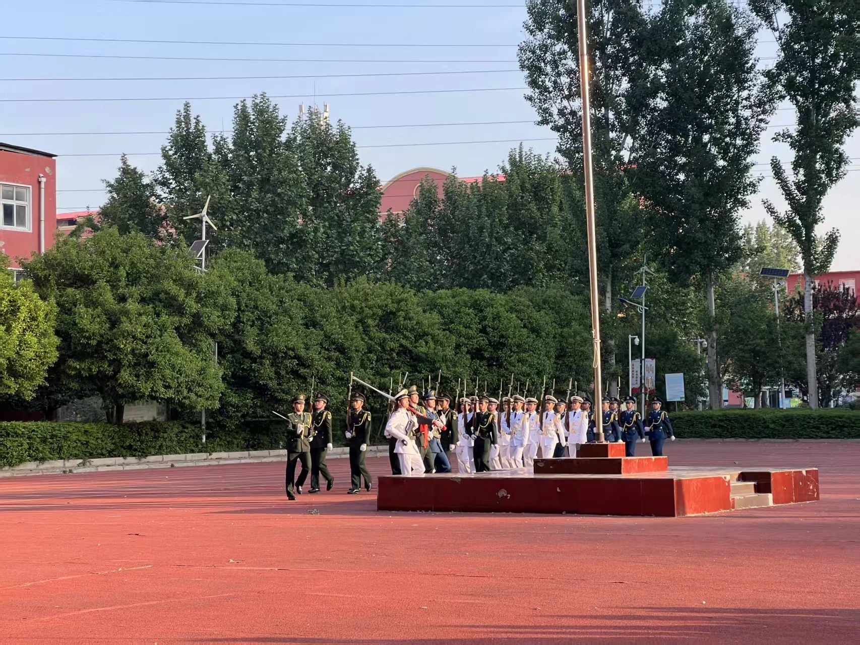 儀式正式開(kāi)始,國(guó)旗護(hù)衛(wèi)隊(duì)隊(duì)員身姿挺拔、精神抖擻,邁著整齊有力的步伐走向升旗臺(tái)。他們動(dòng)作規(guī)范、步伐一致,展現(xiàn)出高度的紀(jì)律性和使命感。隨著激昂的國(guó)歌聲響起,五星紅旗在晨光中緩緩升起,迎風(fēng)飄揚(yáng)。全體師生神情肅穆,目光緊緊追隨著國(guó)旗,心中滿是對(duì)祖國(guó)的熱愛(ài)與崇敬。