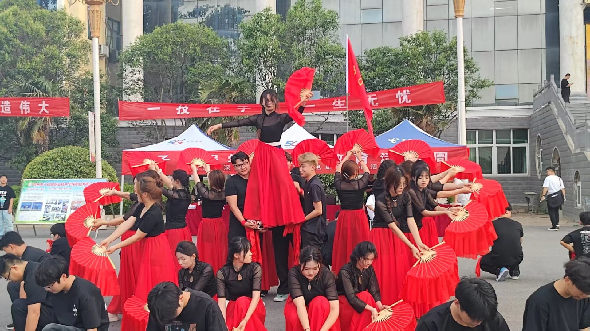 不僅如此,本次活動(dòng)還融合了《滿江紅》和《紅旗飄飄》的舞蹈,《滿江紅》舞蹈的激蕩為師生們都帶來(lái)了一場(chǎng)震撼心靈的視聽盛宴,他們用靈活的肢體語(yǔ)言,生動(dòng)的展示了岳飛將軍的精忠報(bào)國(guó)。《紅旗飄飄》旋律響起,鮮艷的紅扇在舞者們手中舞動(dòng),點(diǎn)燃了現(xiàn)場(chǎng)每一個(gè)人的愛國(guó)熱情。