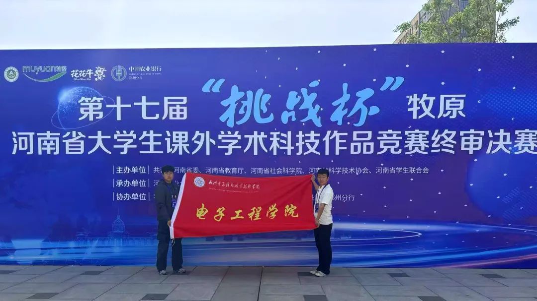在河南省第十七屆 “挑戰(zhàn)杯” 牧原河南省大學(xué)生課外學(xué)術(shù)科技作品競賽中,電子工程學(xué)院學(xué)子表現(xiàn)卓越,學(xué)校迎來歷史性時刻,參賽成績實(shí)現(xiàn)了歷史性飛躍,充分彰顯了學(xué)院在科技創(chuàng)新教育領(lǐng)域的深厚積淀與強(qiáng)勁實(shí)力。未來,電子工程學(xué)院將繼續(xù)加大對學(xué)生科技創(chuàng)新活動的支持力度,鼓勵更多學(xué)生參與到各類高水平學(xué)科競賽中,培養(yǎng)更多具有創(chuàng)新精神和實(shí)踐能力的高素質(zhì)人才,為推動科技創(chuàng)新發(fā)展貢獻(xiàn)力量 。