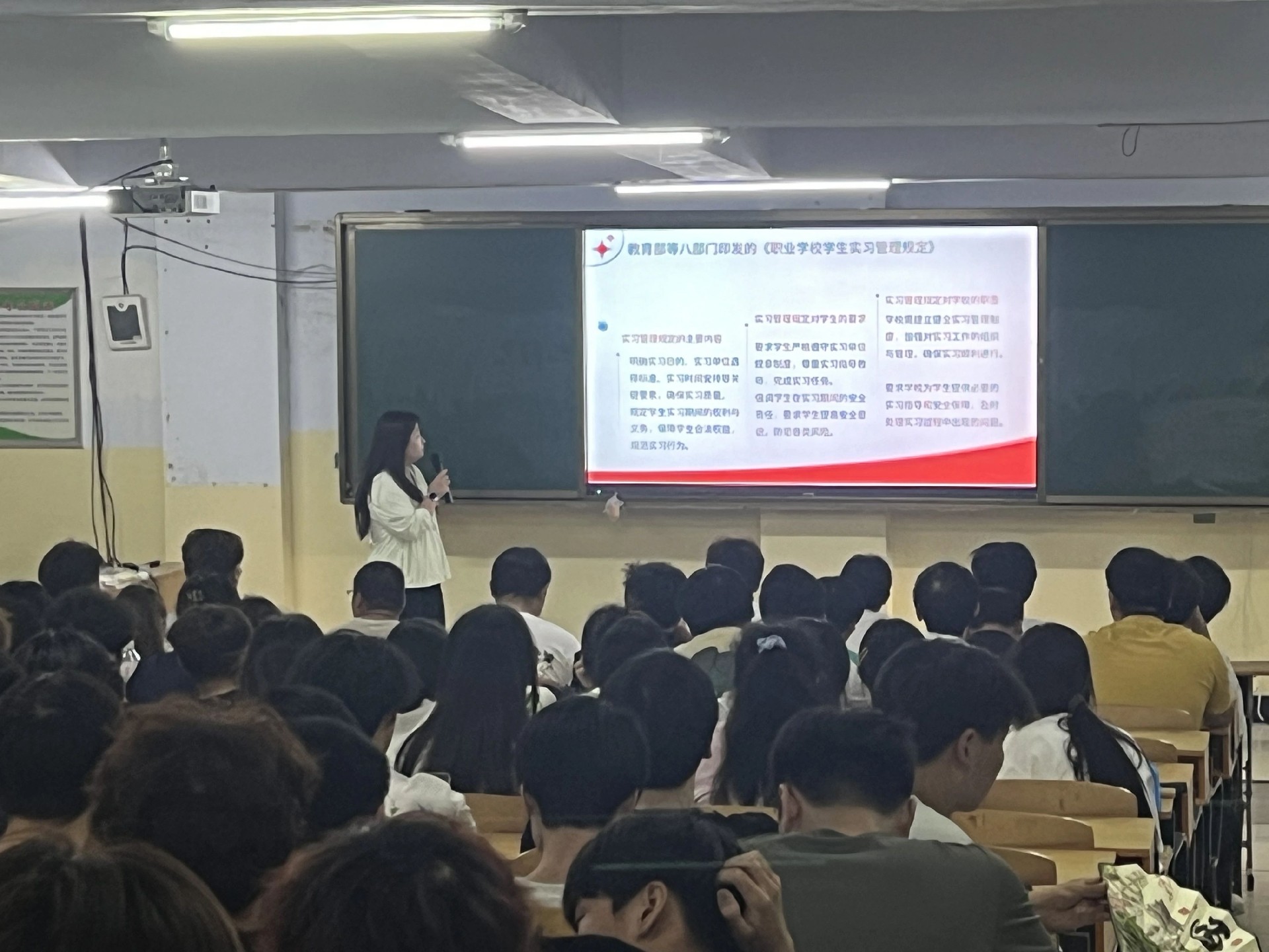 實習(xí)指導(dǎo)老師首先帶領(lǐng)學(xué)生們認(rèn)真學(xué)習(xí)了教育部等八部門發(fā)布的《職業(yè)學(xué)校學(xué)生實習(xí)管理規(guī)定》的文件精神,解讀了職業(yè)學(xué)校實習(xí)備案管理平臺的作用,還詳細(xì)介紹了頂崗實習(xí)的安排,包括實習(xí)時間、實習(xí)單位、實習(xí)崗位。并就實習(xí)任務(wù)、實習(xí)考核等方面進行了說明,要求同學(xué)們嚴(yán)格遵守實習(xí)單位的規(guī)章制度,按時完成實習(xí)任務(wù),認(rèn)真撰寫實習(xí)報告,確保實習(xí)質(zhì)量。