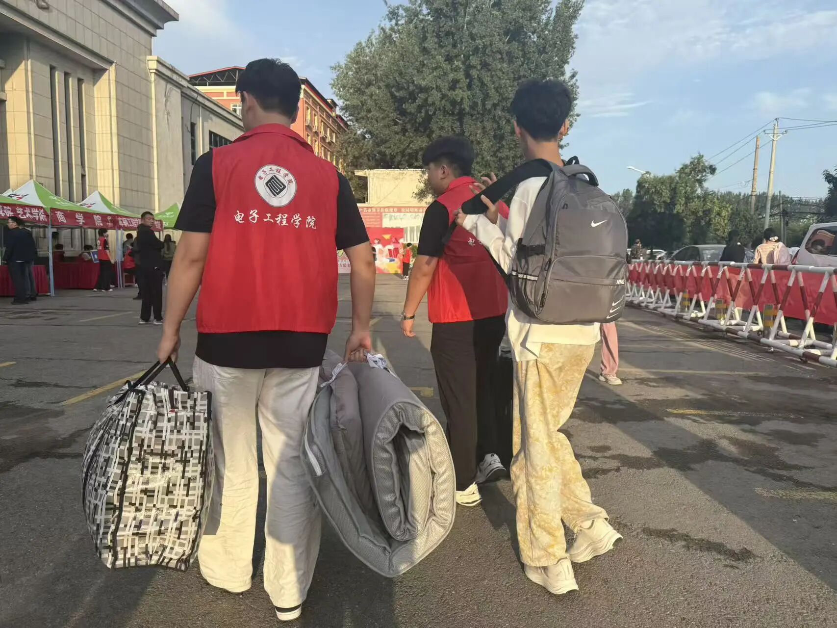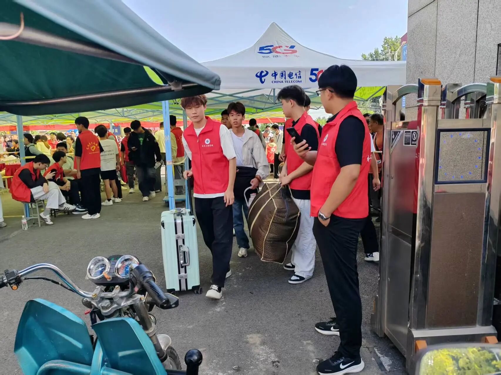 迎新現(xiàn)場熱鬧非凡,志愿者們熱情地引導(dǎo)著新生,幫他們搬運(yùn)行李;學(xué)長學(xué)姐們笑著介紹校園,分享學(xué)習(xí)生活經(jīng)驗(yàn);新生們眼里滿是好奇與期待,和家人一起仔細(xì)打量著嶄新的校園環(huán)境,處處洋溢著青春的活力與對未來的憧憬。