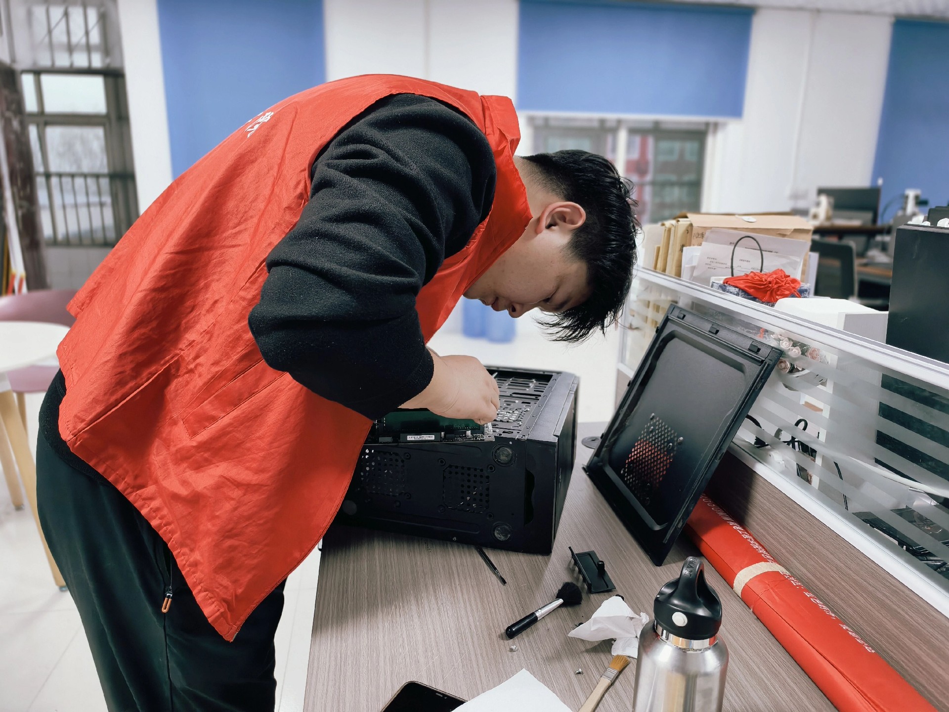 此次義修活動(dòng)聚焦師生實(shí)際需求,不僅解決了電腦使用中的“急難愁盼”問題,更展現(xiàn)了我院學(xué)子的專業(yè)素養(yǎng)與責(zé)任擔(dān)當(dāng)。學(xué)工部將持續(xù)關(guān)注師生需求,常態(tài)化開展此類志愿服務(wù)活動(dòng),為建設(shè)和諧校園、保障教學(xué)辦公順暢貢獻(xiàn)力量。