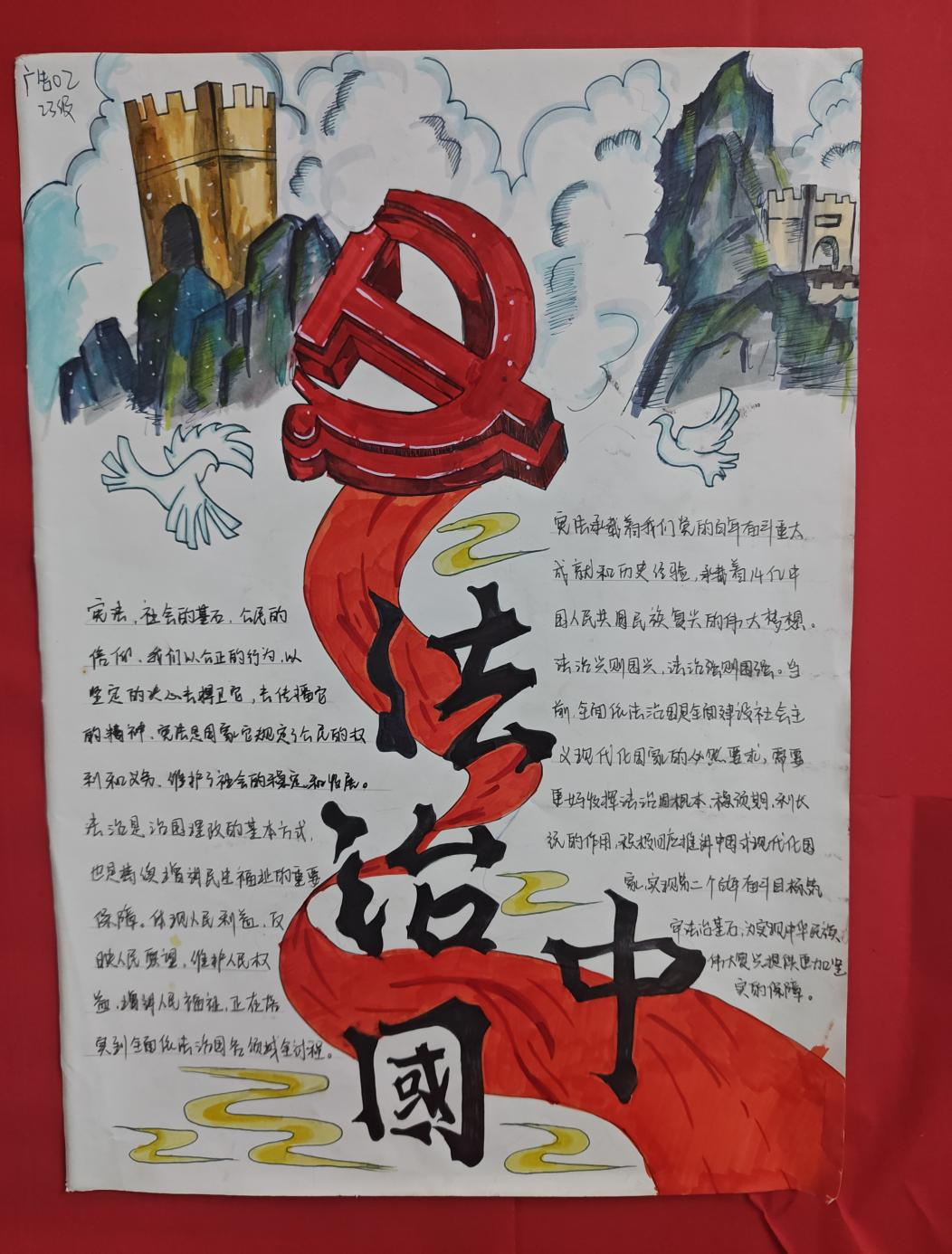 活動(dòng)期間,藝術(shù)學(xué)院組織各班級(jí)積極參與,同學(xué)們充分發(fā)揮專業(yè)特長(zhǎng)和創(chuàng)新思維,用畫筆詮釋對(duì)法律的理解與感悟。繪畫作品題材豐富多樣,涵蓋憲法、刑法、反電信網(wǎng)絡(luò)詐騙法等國(guó)家重要法律,以及校園安全、行為規(guī)范等校規(guī)校紀(jì)內(nèi)容。有的作品描繪了憲法宣誓的莊嚴(yán)場(chǎng)景,展現(xiàn)憲法的權(quán)威;有的聚焦電信網(wǎng)絡(luò)詐騙,以生動(dòng)畫面警示同學(xué)們提高防范意識(shí);還有的圍繞校園生活,倡導(dǎo)遵守校規(guī)校紀(jì),共建和諧校園。