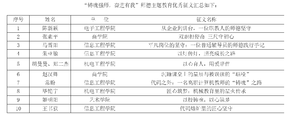鄭州電子信息職業(yè)技術(shù)學院 關(guān)于“鑄魂強師,奮進有我”師德教育主題征文和師德師風建設(shè)優(yōu)秀案例評選結(jié)果的公示